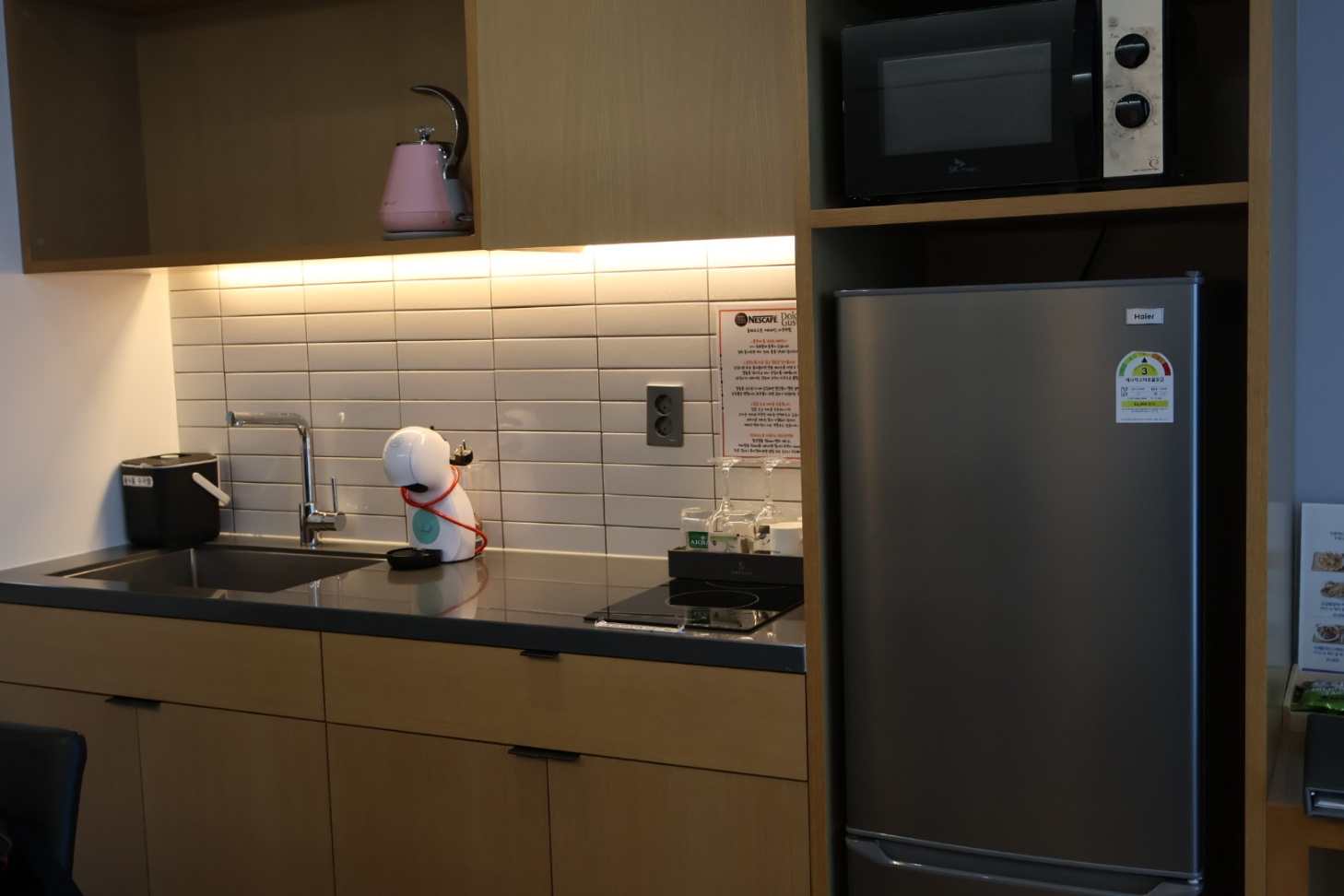 전자레인지, 커피포트, 냉장고 등이 있습니다.