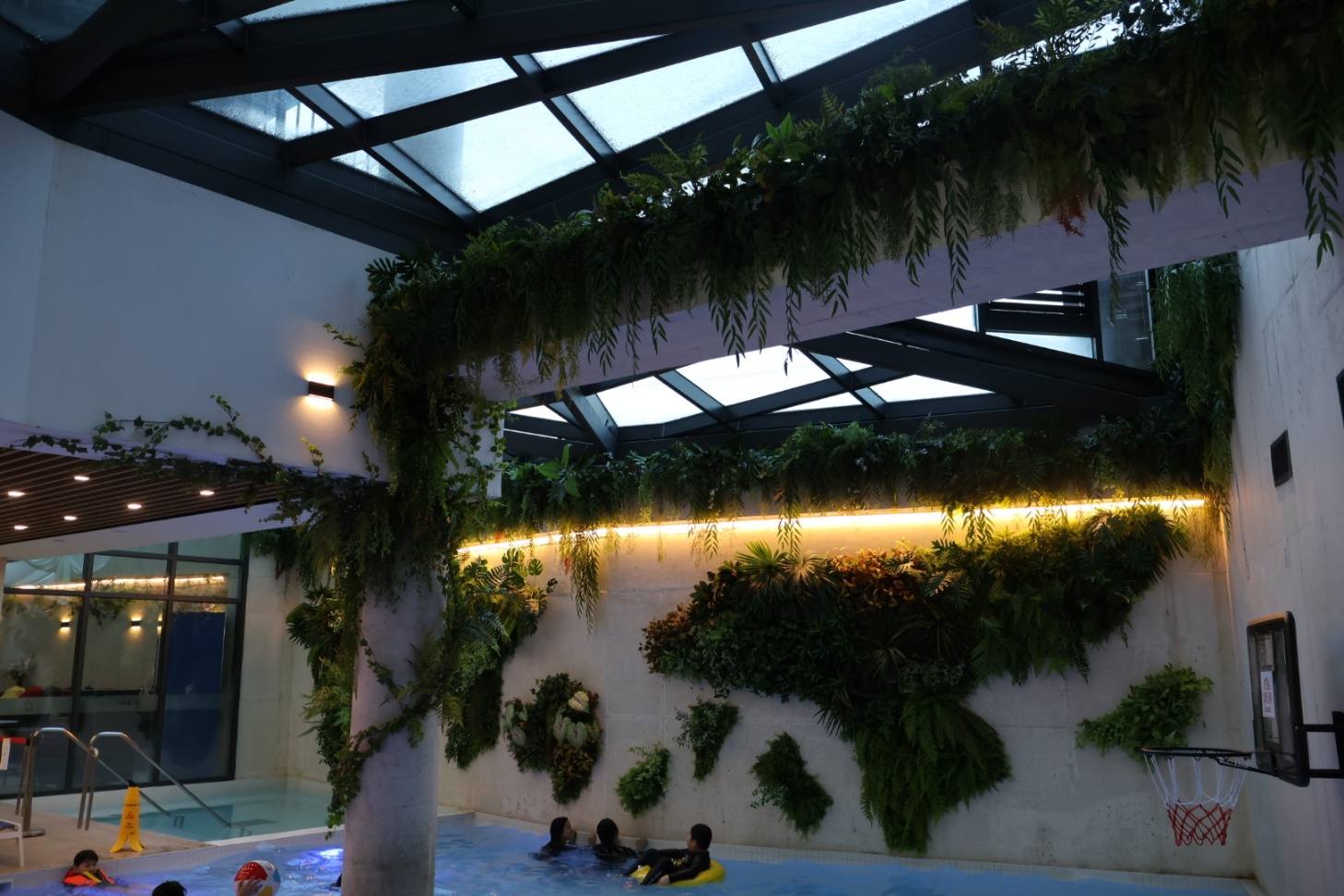 아이들이 이렇게 추운 날씨에도 지하 1층 수영장에서