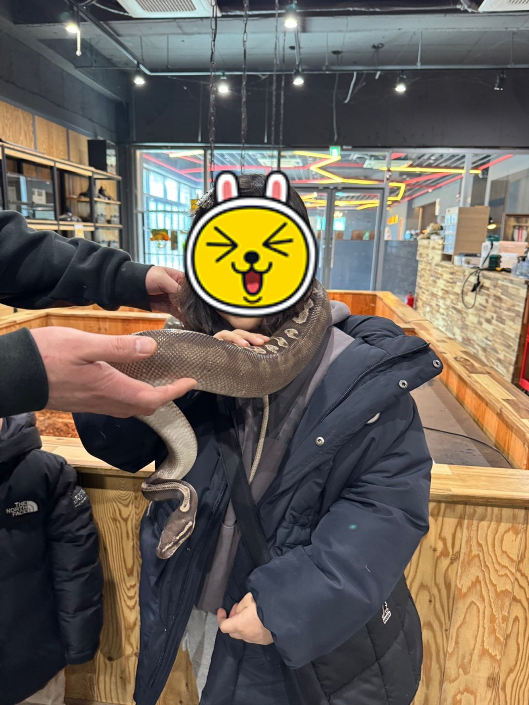 실제로 뱀을 목에 걸어보는